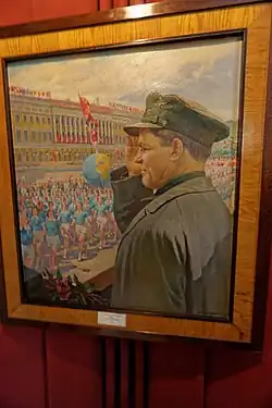 In 1921, Kirov became First Secretary of the Communist Party of Azerbaijan, the Bolshevik party organization in the Azerbaijan SSR.[7] Kirov was a loyal supporter of Joseph Stalin, the successor of Vladimir Lenin, and in 1926 was rewarded with command of the Leningrad party organization. Kirov was a close personal friend of Stalin, and a strong supporter of industrialisation and forced collectivisation. At the 16th Congress of the All-Union Communist Party (Bolsheviks) in 1930, Kirov stated: "The General Party line is to conduct the course of our country industrialization. Based on the industrialisation, we conduct transformation of our agriculture. Namely, we centralise and collectivise."[8]
