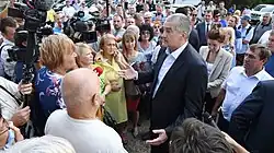 Aksyonov sued Mikhail Bakharev, Vice Speaker of the Crimean Parliament in 2010, for alleging such improprieties. Although the court of the original jurisdiction ruled for Aksyonov and demanded that Bakharev publish a retraction, the decision was overturned by an appellate court which determined that there was no evidence to disprove the allegations.[20] Andriy Senchenko, a Crimean member of Verkhovna Rada from the Batkivshchyna party, alleged that Aksyonov was involved in these activities together with Supreme Council Chairman Vladimir Konstantinov.[14][21][22][23] Senchenko alleges that "there were reports that he participated in the contract killing of (Volodymyr) Tykhonchuk [in 2004], then head of Crimean State Securities Commission, and before that in the killing of head of State Property Fund (Oleksiy) Golovizin [in 1997]."[18] Aksyonov was investigated by the police for both murders, but has never been prosecuted. Senchenko believes Aksyonov managed to evade criminal responsibility due to his connections on the peninsula.[18]