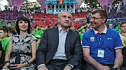 From 1993 to 1998, he was deputy director of a company named Ellada, a business related to food products.[7][6] From October 1998 to March 2001, he was deputy director of the Asteriks company and since April 2001 he has been deputy director of the Eskada company.[6] Aksyonov is also the head of Crimea's Greco-Roman wrestling organization, Sports club Hwarang-do.[8][6] Aksyonov received his Ukrainian passport on 12 August 1997.[6]