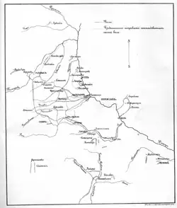 On the right bank of Dnieper between its tributaries Teteriv and Ros the remnants of the walls form six lines stretching from west to east.[2] One Serpent's Wall passed over the left bank of Dnieper and its tributary Sula.[2]