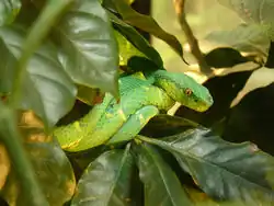 ![]() Side-striped palm-pitviper in display at the Serpentarium | |