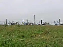 Following the 2014 annexation of Crimea by the Russian Federation, a 38th fighter regiment of the Russian 27th Mixed Aviation Division, flying Su-27s and Su-30s, was established at Belbek, but relocated to Russia after explosions in August 2022.[9]
