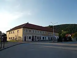 After the construction of the 141 kilometres (88 mi) long Lujzijana road in 1803-1811,[11] Severin gained a new importance as one of the larger towns on the road from Karlovac to Rijeka. For example, the Seljan map of 1847 skips Komorske Moravice, Skrad and Lokve along the Lujzijana, featuring nothing between Severin and Mrzla Vodica.[14] The construction of the road, eventually named after Marie Louise, Duchess of Parma, began under Josip Filip Vukasović in Rijeka in 1803, and reached Severin in 1808, shortly before Vukasović's death of a wound sustained at the Battle of Wagram.[11] The road was completed to Karlovac in 1809 by the French. This road would greatly increase regional logging exports and bring significant traffic through Severin. Later on, the shareholder's society of the Lujzijana,[e] with seat in Vienna would purchase land in Severin, constructing a tollbooth there.[8]: 12 In 1874, the society would sell all its assets along the road, including the large building they constructed in Severin.[15]