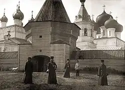 The construction of the enterprise had its origins in the first Soviet 5-year plan when the decision was made to significantly expand shipbuilding capacity. The building of what became SEVMASH began in 1936. The shipyard was developed in accordance with resolution of the Council of Labour and Defence under the Council of People's Commissars of the USSR on May 31, 1936 №137-OK for the construction and repair of large warships of different classes. as part of Stalin's industrialization program and a forced labor camp, part of gulag archipelago, was responsible for the initial construction of its facilities along the left bank of the Nikolskiy Estuary at the mouth of the Severnaya Dvina River.[15] The official establishment date is 21 December 1939, when the hull of its first ship, the battleship Sovetskaya Belorussiya was laid down.[16] The enterprise was known in Soviet times as Shipyard Number 402 (Russian: Завод № 402).[17] During World War II, the shipyard was involved in repairing warships and producing turret artillery units and mine-sweeping equipment.[18] Also during the war years the enterprise built large mine hunters, destroyers, diesel-electric submarines, ferries, lighters, floating repair barges, while repairing both Northern Fleet surface ships as well as vessels delivering supplies via the Arctic Convoys. By 1950 the shipyard had repaired 139 ships and vessels.[16] In the early 1950s, large-scale production of submarines was launched.[18] In 1969, the company produced world's first nuclear submarine with a titanium alloy hull, Project 661. In the mid-1970s, its facilities underwent major reconstruction; its industrial capacity was doubled and it had Russia's largest covered slipway installed. The Typhoon class nuclear submarine cruiser Project 941, built in 1981, entered the Guinness World Records as the world's biggest submarine.[18] During its history as of 2009, the company had built 45 surface ships and 163 submarines, including 128 nuclear submarines.[11]