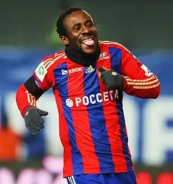 In CSKA's match against Tom Tomsk on 20 August 2011, Doumbia scored a second-half brace as the capital club eased to a 3–0 victory.[25] On 14 September, he scored twice in the Champions League against Ligue 1 champions Lille, helping his side secure a 2–2 draw after falling behind 2–0.[26] The Ivorian striker added two more goals as CSKA defeated Turkish side Trabzonspor 3–0 on 18 October, to record the Russians first victory in Group B play.[27] Five days later, Doumbia scored two goals to power CSKA to victory in their enthralling 5–3 game against side Anzhi Makhachkala.[28] In their following league game against Spartak Nalchik on 28 October, Doumbia scored a seven-minute hat-trick to earn his side a 4–0 win, after his teammate, Vagner Love, had put the hosts up 1–0 in the 34th minute. Doumbia opened the scoring against Internazionale on 7 December, guiding his side to a 2–1 away victory,[29] which secured a berth in the Round of 16 against Spanish club Real Madrid.[30] On 29 December, Doumbia was voted the Russian Premier League Player of the Year after netting 24 goals in 30 league games during the calendar year as well as five Champions League goals in as many games.