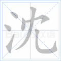 The side-water radical (氵: shuǐ) plus (冘: yín) results in the Chinese character surname (沈: shěn).