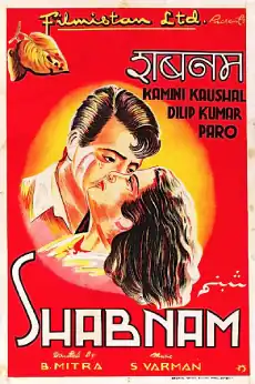 Shabnam is a 1949 Hindi movie produced by Filmistan and directed by B. Mitra. The film stars Dilip Kumar, Kamini Kaushal, Jeevan and Shyama. The film's music is by S. D. Burman.[1]