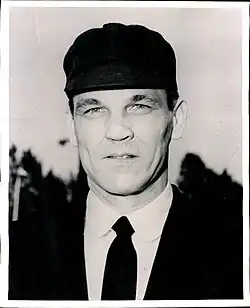 He was the home plate umpire when one of the most violent brawls in baseball history occurred during a game between the Los Angeles Dodgers and the San Francisco Giants at Candlestick Park on August 22, 1965.[7][8] The incident occurred between Giants pitcher Juan Marichal and Dodgers catcher John Roseboro in the aftermath of the Watts riots near Roseboro's Los Angeles home and while the Dominican Civil War raged in Marichal's home country so emotions were raw.[9] The Dodgers' Maury Wills led off the game with a bunt single off Giants pitcher Marichal and eventually scored a run.[10] Marichal, a fierce competitor, viewed the bunt as a cheap way to get on base and took umbrage with Wills.[8][9] When Wills came up to bat in the second inning, Marichal threw a pitch directly at Wills sending him sprawling to the ground.[8] Willie Mays then led off the bottom of the second inning for the Giants and Dodgers' pitcher Sandy Koufax threw a pitch over Mays' head as a token form of retaliation.[8][9] In the top of the third inning with two outs, Marichal threw a fastball that came close to hitting Ron Fairly, prompting him to dive to the ground.[9] Marichal's act angered the Dodgers sitting in the dugout and, Crawford then warned both teams that any further retaliations would not be tolerated.[9] When Marichal came to bat in the third inning, he was expecting Koufax to take further retaliation against him but instead, he was startled when Roseboro's return throw to Koufax after the second pitch either brushed his ear or came close enough for him to feel the breeze off the ball.[11] When Marichal confronted Roseboro about the closeness of his throw, Roseboro came out of his crouch with his fists clenched.[11] Marichal stated afterwards that he thought Roseboro was about to attack him and raised his bat, striking Roseboro at least twice over the head with his bat, opening a two-inch gash that sent blood flowing down the catcher's face that required 14 stitches.[11] Koufax ran in from the mound to attempt to separate them and was joined by the umpires, players and coaches from both teams.[11] Crawford attempted to step between the two players in an effort to defuse the situation.[9] When Marichal stumbled, Crawford saw his opportunity and wrapped both of his arms around Marichal and the two men fell to the ground.[9] A 14-minute brawl ensued on the field before Koufax, Giants captain Willie Mays and other peacemakers restored order.[8] Crawford ejected Marichal from the game and afterwards, National League president Warren Giles suspended Marichal for eight games (two starts), fined him a then-NL record US$1,750[7][12] (equivalent to $17,461 in 2024),[13] and also forbade him from traveling to Dodger Stadium for the final, crucial two-game series of the season.[11] Roseboro filed a $110,000 damage suit against Marichal one week after the incident but, eventually settled out of court for $7,500.[11]