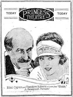 Sham is a lost[1] 1921 American silent romantic drama directed by Thomas N. Heffron and starring Ethel Clayton and Theodore Roberts. The film is based on the 1905 play of the same name written by Elmer Harris and Geraldine Bonner, and was adapted for the screen by Douglas Z. Doty.[2]
