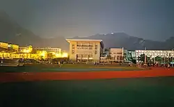 A panoramic view of the East Campus cafeteria, taken in 2015, with Mount Tai in the distance.