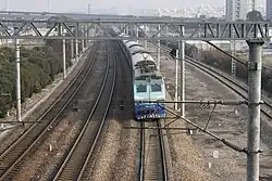 The Shanghai–Hangzhou railway, also known as the Huhang railway, is a double-track railroad in eastern China between Shanghai and Hangzhou in Zhejiang Province. Its Chinese name derives from the character abbreviations Hu (from Shanghai's former status as a fishing village) and Hang (from an old Yue placename). The line is 200 km (124 mi) long and was originally built from 1906 to 1909.[1] Cities along the route include Shanghai, Jiaxing and Hangzhou. The line now forms part of the Shanghai–Kunming railway.