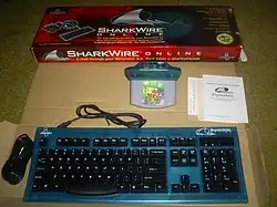 SharkWire Online is a specialized GameShark device with a serial port and modem added, accompanied by a now-defunct dialup Internet portal service. Launched in January 2000,[2] it was sold only in the US, by InterAct which is most famous for its GameShark and Dexdrive. This unlicensed platform was the only Nintendo 64 online service to have been released other than Nintendo's official Randnet service which had already been released only in Japan in December 1999.