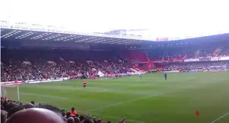 ![]() A near-full capacity South Stand and adjacent Bramall Lane Stand at Bramall Lane | |