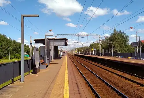 Sheremetyevskaya (Russian: Шереметьевская) is a railway station of the Savyolovsky line of the Moscow Railway in the microdistrict Sheremetyevsky of the city of Dolgoprudny, Moscow Oblast. The station is part of the line D1 "Belorussko-Savelovsky" of the Moscow Central Diameters.