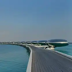 In November 2024, Sheybarah island was officially opened for tourists with the opening of the Shebara resort.[7] The resort features 73 oval-shaped reflective steel villa, 38 of which are overwater villas. The resort was designed by Killa Design, and was featured in TIME Magazine's "World's Greatest Places" of 2025.[8][2]