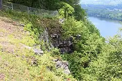 The Overlook has been an important prominent feature of the Susquehanna valley for centuries. Before Moravian settlers inhabited the valley in the 18th century, the Penns creek path began and ended where county line road now sits, an important logistics route for the Native Americans in the area. The path ran from Frankstown, through New Berlin, and eventually to Northumberland. In the 1840s, the cliff was home to John Mason, an eccentric bachelor who constructed a viewing tower that hung at a 45-degree angle of the precipice. The tower was destroyed in 1864. In 1894, a beautiful hotel was constructed where the current pavilion is now, and that hotel burnt to the ground in 1898. In the early 20th century, the cliff was frequented by locals for picnics and leisure, often at what was called table rock. Wealthy mineral miners attempted an excavation of the cliff, in hopes of discovering valuable minerals, but were unsuccessful, leading to a small cut out which gives the appearance of a cave, however, there are no caves anywhere in the cliff. Over the years, scout camps and rehabilitation camps were set up on the land, and in 1960 the state opened a public state park on the land. Shikellamy Overlook offers two scenic overlooks. They are 360 feet (110 m) above the confluence of the West Branch Susquehanna River and North Branch Susquehanna River. One can get a view of the northern and western rivers as well as a bird's-eye view of Northumberland, Sunbury, and Hummels Wharf.[2] A breeding pair of state-endangered peregrine falcons have established a successful nest on the cliffs below the scenic overlook. It is only the third known "wild nest" built by the birds in the state. Most other breeding pairs have been introduced to sites throughout the state by the Pennsylvania Game Commission.[6]