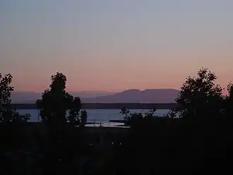 Sunset view of Cook Inlet and Ship Creek, Mount Susitna in background. | |