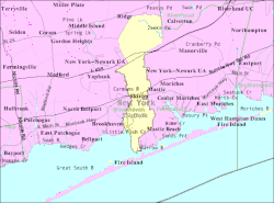 - ^ a b "Geographic Identifiers: 2010 Demographic Profile Data (G001): Shirley CDP, New York". U.S. Census Bureau, American Factfinder. Archived from the original on February 12, 2020. Retrieved January 9, 2013.