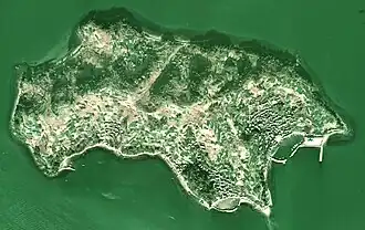 The island has a circumference of 3.8 kilometers and an area of 0.74 square kilometres (0.29 square miles), and is located approximately 6 kilometres (3.7 miles) away from Takuma Port. The highest peak on the island is Yokoo no Tsuji with an elevation of 109 meters. To the north is Takamishima, and to the west is Awashima. It has been inhabited since ancient times and there is a legend that Empress Jingū enshrined a sacred seal on the island. In the Sengoku period, it was a place of refuge for then local warlord Kagawa Nobukane after the fall of Amagiri Castle to the forces of Chōsokabe Motochika. During the Edo Period, it was part of the holdings of Marugame Domain. At the end of the Edo Period, it had a population of 673 and was noted for exporting dried Sea cucumber and other seafoods. During the Meiji and Taisho periods the island continued to be prosperous, and had a population of approximately 1000; however, in the post-World War II era, the island suffered greatly from rural depopulation and as of March 2009 had a population of only 32 people in 26 households.