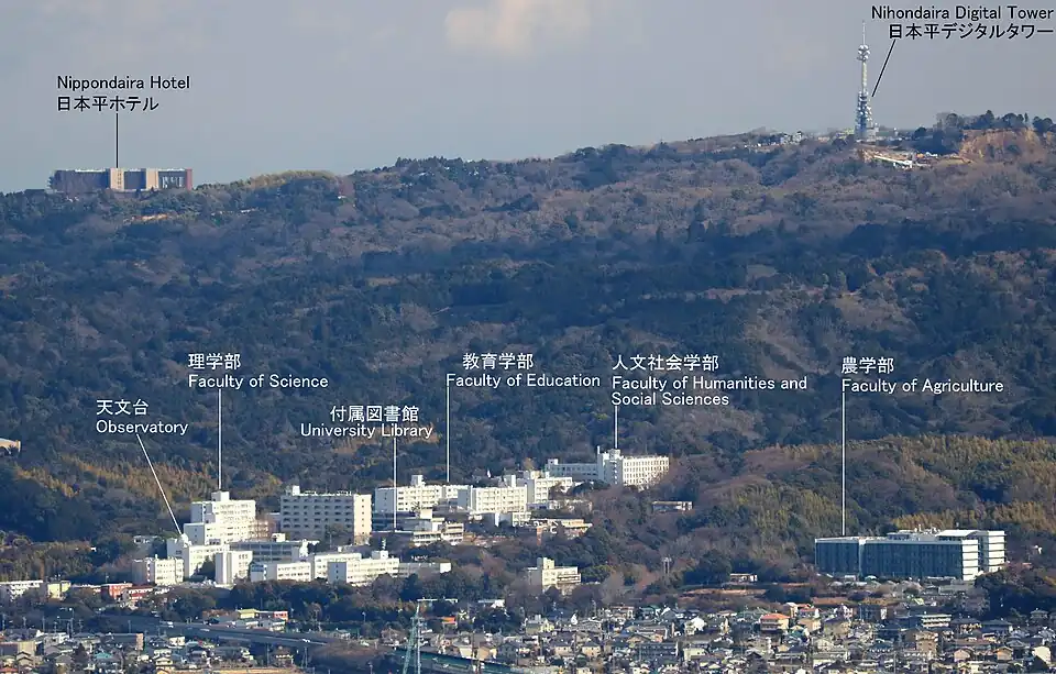 Shizuoka campus overlooks Shizuoka City and Suruga Bay.
