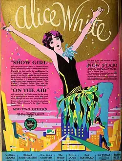Show Girl is a 1928 American synchronized sound comedy-drama film starring Alice White and Donald Reed. While the film has no audible dialog, it was released with a synchronized musical score with sound effects using the sound-on-disc Vitaphone process. The film was based on the first of J. P. McEvoy's two Dixie Dugan novels, as was the 1929 musical. It was followed by a sequel, Show Girl in Hollywood (1930).[1]