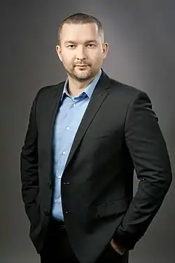 Siarhei Uladzimiravich Cherachen (Belarusian: Сярге́й Уладзі́міравіч Чэ́рачэнь, also known as Sergey Vladimirovich Cherechen Russian: Сергей Владимирович Черечень; born 8 May 1985) is a Belarusian businessman, politician and candidate in the 2020 Belarusian presidential election.[1] He is the current chairman of the Belarusian Social Democratic Assembly.[2]