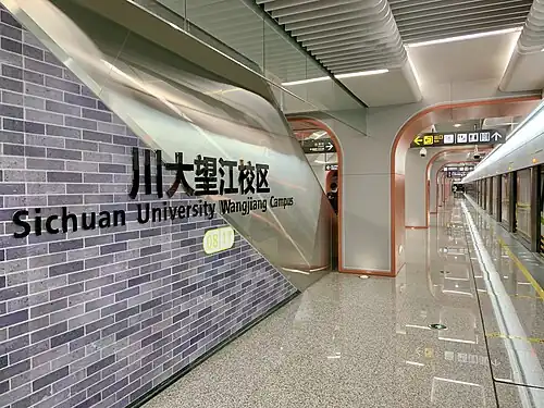 Sichuan University Wangjiang Campus Station is a metro station at Chengdu, Sichuan, China. It was opened on December 18, 2020 with the opening of Chengdu Metro Line 8. The station serves the nearby Wangjiang Campus of Sichuan University.[1][2][3] Exit A provides direct access to the west gate of the Wangjiang Campus of Sichuan University.
