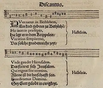 - ^ "Chorale Melodies used in Bach's Vocal Works / Ein Kind geborn zu Bethlehem (Puer natus in Bethlehem)". Bach-Cantatas. 2006. Retrieved 29 June 2011.