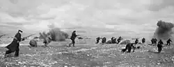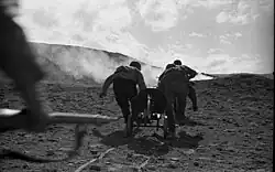 The assault was based around battalion-strength infantry assault groups supported by a platoon of engineers and a few assault guns. Two pioneer battalions were attached to each division to spearhead the attack and break through fixed and fortified defences. The eight battalions of LIV Corps each contained around 386 men on average, and were equipped with 10–12 flame throwers, 28–30 mine detectors, 3,000 kg of high explosives, 2,200 hand grenades, and 500 smoke grenades. The 300th Panzer Battalion, a remote-controlled tank unit using the Goliath tracked mine, was made available for destroying fortifications.[34] The total number of artillery pieces came to 785 German and 112 Romanian medium and heavy guns. Most of these were under the command of LIV Corps, the main assault force. To increase this arsenal, a number of super-heavy artillery pieces were made available. Three 600 mm Karl-Gerät self-propelled mortars (Thor, Odin, and one other) and one 800 mm gun (Schwerer Gustav), delivering 1.4 and 7 ton shells, respectively, and capable of destroying any fortification. However, the Karl-Gerät guns only had a range of between 4–6,000 meters, which made them vulnerable to counter-battery fire. Moreover, only 201 rounds of 600 mm and 48 round of 800 mm ammunition were available. Most of it was used up before the infantry assault.[35]