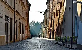 The street was part of a former trading route between Wieliczka, Tarnów and Lwów.[1] After the junction near the Planty Park, the street extends as Starowiślna Street. Its former name was Zwierzęca Street (Ulica Zwierzęca, lit. Animal Street) due to nearby slaughter houses. The street would also be known as Szkolna Street (Ulica Szkolna, lit. School Street) due to the former existence of a nearby school devoted to the Virgin Mary.[2]