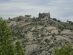 The Sierra de Hoyo is distributed forming a sort of inverted arc, whose ends are guarded by the peaks of Navalospinos (1171 m) —to the northeast—, El Picazo (1268 m) ―to the south― and Peña Cardín (1130 m) —to the northwest—. In its southeastern foothills there are different mountains that serve as a transition to El Pardo, as in the case of La Solana (1002 m) in Hoyo de Manzanares and, to the south, the occasional isolated formation rises, as in the case of Canto del Pico (1005.887 m).[2] The latter, within Torrelodones, which is one of the most important granite formations in the surroundings of the sierra, is dominated by a modernist palace, which was owned by Francisco Franco, to which it gives its name.