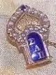 The badge of Sigma Lambda Pi was in the shape of an arch with a crown surmounting it.[2] The arch had seven pearls, the crown ten pearls, and there was a sapphire at the top.[2] The badge's exposed gold was nugget finished, and the letters were gold on a background of gold.[2] The fraternity's colors were sapphire blue and gold.[2] Its motto was "Dum Vivimus Fratres Vivamus" whose English translation is "while we live, let us live as brothers".[2] Its flower was the Carnation.[4]