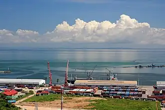 Sihanoukville Autonomous Port (Khmer: កំពង់ផែស្វយ័តក្រុងព្រះសីហនុ; French: Port autonome du Sihanoukville, PAS) is a government agency and state corporation of Cambodia and Sihanoukville that operates and governs the country's sole deep water port.[1] In Sihanoukville, on the Bay of Kampong Som of the Gulf of Thailand in south-western Cambodia. The port was inaugurated in 1960 as construction of the Old Jetty's four berths had begun in 1955.[2]: 18 [3]