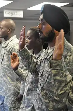 - ^ "US army accepts first Sikh recruit". The Times of India. Bennett Coleman & Co. October 24, 2009. Archived from the original on August 20, 2011. Retrieved October 25, 2009.