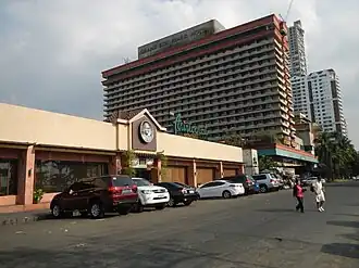 The hotel had 600 rooms. It also hosted two noted nightclubs; the Stargazer of Louie Ysmael and the Playboy Club of Manila (a Playboy Club franchise).[1] The Playboy Club of Manila operated from 1978 to 1991.[1] Its interior is a Presumed Important Cultural Property due to being a work of Ildefonso P. Santos Jr., a National Artist of the Philippines.[5][6][7]