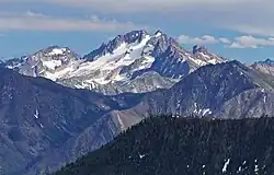 Silver Star Mountain is an 8,876-foot (2,705-metre) mountain located in Okanogan County, Washington. The mountain is part of the Methow Mountains, a subset of the Cascade Range. Silver Star is the dominant feature in the Washington Pass area and visible from the North Cascades Highway. It was first climbed by Lage Wernstedt in 1926.[2]