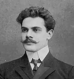 Murafa was originally involved with Ion Pelivan's Romanian national club and library, mentioned in Bălți in or around 1908.[4] In 1908 or 1909, Murafa, Madan, Ștefan Ciobanu and Daniel Ciugureanu established Deșteptarea ("Awakening") or Pământenia ("The Colony"), a Bessarabian Romanian students' circle in Kyiv. At Deșteptarea, Murafa was sought after for his melodious voice, which he gave an aesthetic quality to the nationalist manifesto. He organized benefit concerts, and put to music the patriotic poetry of Alexei Mateevici.[2] As noted by the nationalist doyen Pan Halippa, Murafa was fast becoming "the tireless propagandist of the national and popular cause."[5] Reputedly, after decades of Russification, Murafa was one of the select few Besarabian intellectuals who could decently express themselves in the Romanian vernacular, which was better preserved by the mass of the people.[6]