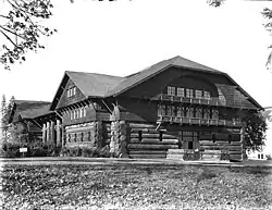 In 1905 Benson donated lumber to build the Forestry Building at the Lewis and Clark Centennial Exposition in Portland.[9] The building was the largest wooden building at the time and it burnt down in 1964.[10] The interior was copied in the Glacier Park Lodge.