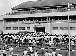 The year 1959 saw mostly the non-sporting events taking place in the Stadium. The People's Action Party (PAP) had made public speech to celebrate their victory in the general election. The Hall also served to hold entertainment activities such as dramas, dances and even erotic strip dance by the famous local "Strip Dancing Queen" Rose Chan.[16] In addition, from 1959 to 1960, Puspawarna Singapura, live recordings of variety shows were held by the Radio Singapore[16] with P. Ramlee (famous Malaysian singer, producer, composer) as the main host. It could be seen that the usage of the sports hall was less strict and exclusive. It might be out of an urge for SBA to increase its source of income and to clear off its debt from the construction.