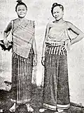 The Sinh (Lao: ສິ້ນ, [sȉn]; Thai: ซิ่น, RTGS: sin, [sîn]; Tai Nuea: ᥔᥤᥢᥲ; Northeastern Thai: สิ้น, [sìn]), or commonly (Thai: ผ้าซิ่น, RTGS: pha sin),[1] is a handmade traditional skirt, often made of silk, worn by Lao women[2] and Thai women, particularly northern Thai and northeastern Thai women. It is a tube skirt.[3] Its pattern can indicate which region the wearer is from. In present-day Thailand, pha sins are typically worn at special events. However, in Laos, Sinhs are worn more regularly in daily life.