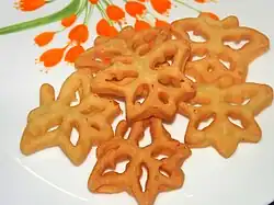 ![]() "Aluth Awurudu" festival sweetmeats including kavum, kokis, and kiribath (milk rice) | |