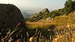 There are 1027 species of land plants, includes 67 moss, 19 fern, 9 gymnosperm and 931 flowering plant species.[4][8] Of them 43 are included in the Red Book of Bulgaria, counting several endangered species — Aethionema arabicum, Anemone sylvestris, Arabis nova, Colchicum szovitsii, Galanthus elwesii, Orchis militaris, Orchis spitzelii, Tulipa hungarica and Verbascum humile — as well as 36 rare or vulnerable species, such as Aquilegia nigricans, Himantoglossum caprinum, Pulsatilla halleri, etc.[8][10]