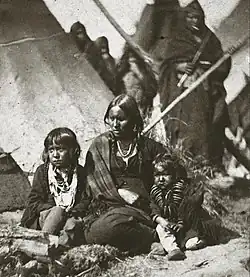 Two years after statehood, the settler population in Minnesota, meanwhile, had grown to 172,072 in 1860 from just 6,077 in 1850.[31] The land was divided into townships and plots for settlement. Logging and agriculture on these plots eliminated surrounding forests and prairies, which interrupted the Dakota's annual cycle of farming, hunting, fishing and gathering wild rice. Hunting by settlers dramatically reduced populations of wild game, such as bison, elk, deer and bear. This shortage of wild game not only made it difficult for the Dakota in southern and western Minnesota to directly obtain meat, but also reduced their ability to sell furs to traders for additional supplies.[30]