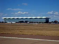 Sir Seretse Khama International Airport (IATA: GBE, ICAO: FBSK), located 15 kilometres (9 mi) north of downtown Gaborone, is the main international airport of the capital city of Botswana. The airport is named after Sir Seretse Khama, the first president of Botswana.[3] It was opened in 1984 to handle regional and international traffic. It has the largest passenger movement in the country. In 2017 the airport got its first special economic zone which would house in the following departments: CAAB, Botswana Innovation Hub, ITPA and diamond hub for diamond sector.[4][5]