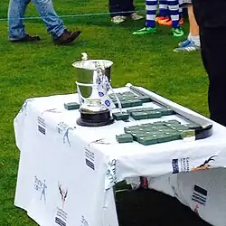 The Sir William Sutherland Cup, more commonly known simply as the Sutherland Cup, is a trophy in the sport of shinty. It is the national cup competition for junior sides, the equivalent of the Camanachd Cup for those sides in lower league competition.[1] The current (2024) holders are Kingussie 2nd team, the "junior" level reserves of the successful "senior" club.