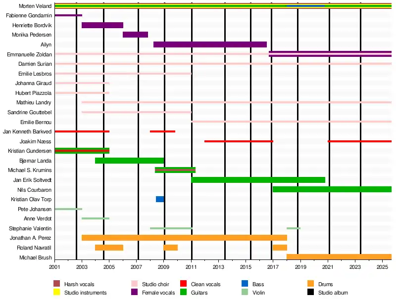 - Morten Veland – guitars, harsh vocals, other instruments on studio (2001–present), live bass (2018–2020)