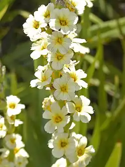 Sisyrinchium striatum, common names pale yellow-eyed-grass[2] or satin flower, is an evergreen perennial plant in the family Iridaceae.