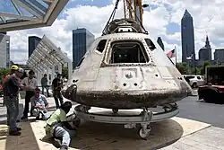 In 1977 the command module was transferred to the Smithsonian Institution by NASA.[22] The command module was moved to the Great Lakes Science Center in Cleveland, Ohio, in June 2010.[23][24] It took a year to plan and US$120,000 to move the capsule.[23] It is currently on display at the visitor's center of the NASA Glenn Research Center at the science center.[25]