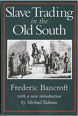 Slave-Trading in the Old South by Frederic Bancroft, an independently wealthy freelance historian, is a classic[1] history of domestic slave trade in the antebellum United States. Among other things, Bancroft discredited the assertions, then common in Ulrich B. Phillips-influenced histories of antebellum America, that slave traders were reviled outcasts and that slave trading was a rare exigency.[2] Bancroft's book "provides still unrivalled profiles of great numbers of traders, many of whom he found to have the highest social standing."[3]
