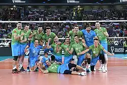 At the 2019 European Championship, Slovenia was one of the four co-hosts of the tournament.[13] The team reached the final again, where they lost 3–1 to Serbia, clinching their second silver medal in four years.[14] Two years later, at the 2021 European Championship, Slovenia once again reached the final. After defeating hosts Poland in the semifinals, they lost the final 3–2 against Italy to claim their third silver medal.[15] Gregor Ropret was selected in the All Star Team as the best setter through fan votes.[16] Giuliani decided to step down as head coach after the tournament,[17] and was replaced by Mark Lebedew from February 2022.[18] After failing to reach the top 8 in the 2022 Nations League, he was sacked and replaced by Gheorghe Crețu in August 2022, just two weeks before the start of the 2022 FIVB Men's Volleyball World Championship, co-hosted by Slovenia and Poland.[19][20]